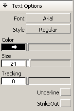 これらのオプションは、Text Image ツールを選択した場合にのみ表示されます。これらのオプションを使用して、イメージにテキストを追加します。テキストはキャンバスの独立したレイヤに作成されるため、テキストを自由に移動、操作できます。