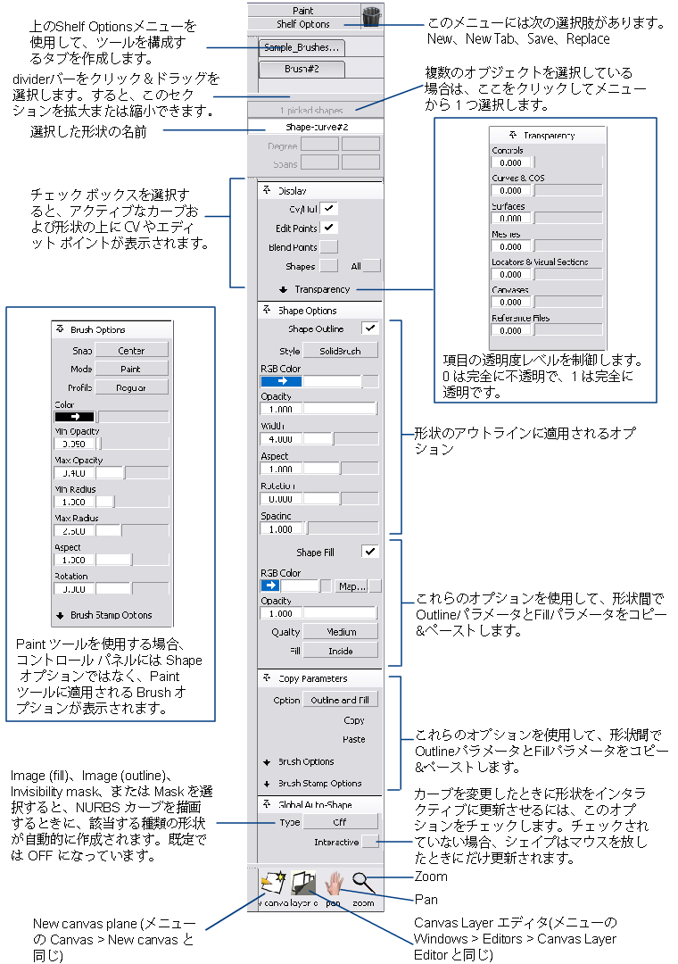Brush Options は、Paint パレットまたは Sketch#2 シェルフからツールを選択している場合に、Paint Panel に表示されます。