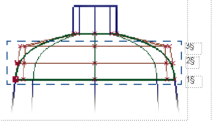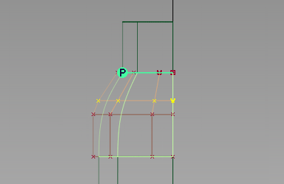 Back ビューで、赤いハルの線分をクリックし、上から 2 つ目の CV の列のハルを選択します。