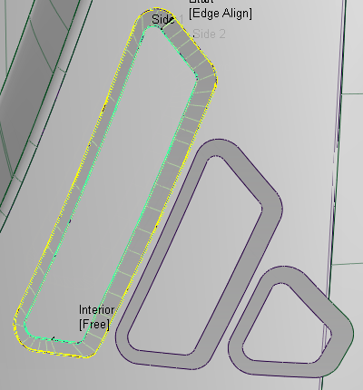 Freeform Blend を使用してトランジション サーフェスを作成します。このツールは 2 つのエッジの間に接線ブレンドまたは曲率ブレンドをすばやく作成するもので、エッジが多数の部分からなる場合に便利です。