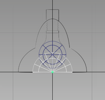 ランプの頭部の新しいスケッチが Back ビューに表示され、すべてのジオメトリが非表示になります。
