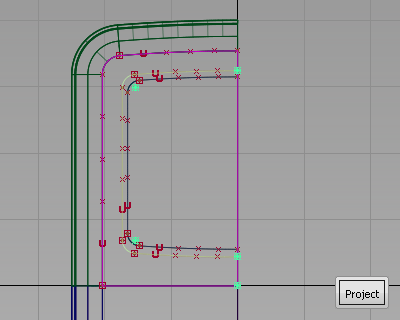 次に、カーブを正面サーフェスとオフセット サーフェスに Project(投影)し、画面シェイプを切り出します。