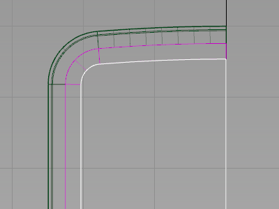 ケースのアウトラインをオフセットして、画面のカーブを作成します。次に正面にそれを投影し、カーブオンサーフェスを作成しますこのカーブオンサーフェスを表示画面用の開口部をトリミングするのに使用します。