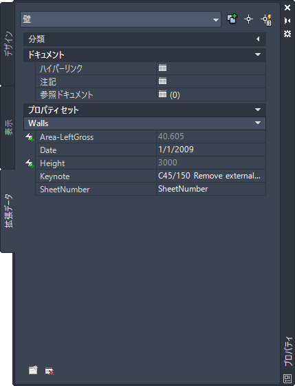キーノート、日付、およびシート番号フィールドを備えた壁プロパティ