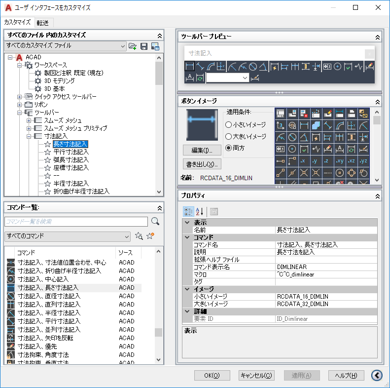 [大きいイメージ]: ツールバーまたはリボン パネルにコマンドを追加するときに使用する大きいイメージのファイルを指定します。