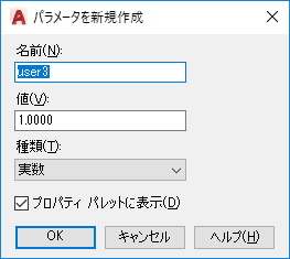 新しいパラメータのタイプを決定します。パラメータのタイプは、実数、距離、面積、体積、角度、文字列から選択することができます。