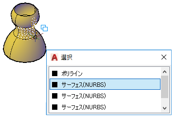 隠れているサブオブジェクトを見つける 1 つの方法は、[作図補助設定]ダイアログ ボックスの[選択の循環]タブで[選択循環リスト ボックスを表示]をオンにします。次に、リストから選択して、サブオブジェクトを選択できます。