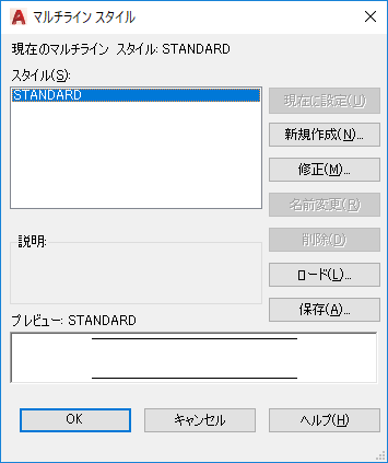 既定のマルチライン スタイル名 STANDARD、現在のマルチライン スタイル、使用中のマルチライン スタイルを削除することはできません。