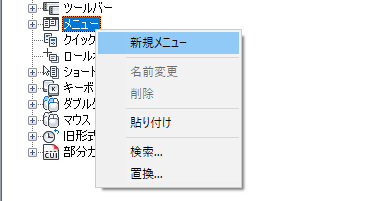 注: コマンドをプルダウン メニューに追加した後、そのコマンドの表示名を変更できます。これにより、プルダウン メニュー項目の表示や、[Alt]キーを使用したキーボード ナビゲーションでアクセスする方法をコントロールすることができます。アクセス方法を定義するには、プルダウン メニューの下位のプルダウン メニュー項目を選択し、[プロパティ]ペインで[名前]プロパティを変更します。