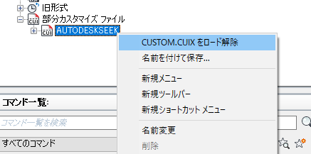 部分 CUIx ファイルがロード解除され、ツリーから除去されます。