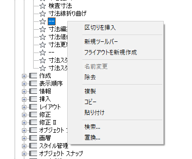 - [カスタマイズ]タブの[コマンド一覧]ペインで、複製を作成するコマンドを探します。