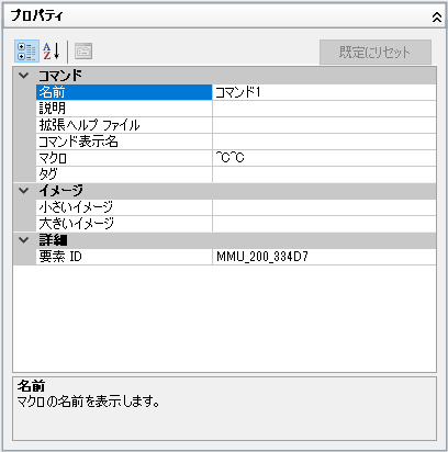 - [プロパティ]ペインで、コマンドのプロパティを変更します。