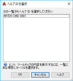 4. [ヘルプ ID を選択]ダイアログ ボックスで、拡張ツールチップ コンテンツのヘルプ ID を選択します。[OK]をクリックします。