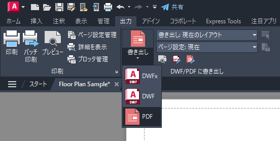 クイック書き出し機能を初めて使用する場合は、出力形式(PDF、DWF、または DWFx)を選択する必要があります。形式を選択した後、[書き出し]ボタンを直接クリックすることができます。