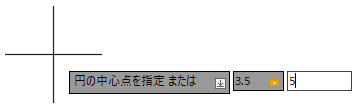 絶対座標値 3.5,5 が円の中心点として使用され、CIRCLE[円]コマンドの次のプロンプトがダイナミック入力ツールチップに表示されます。