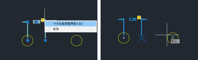 | DIMDISASSOCIATE[寸法自動調整解除] | 選択した寸法の自動調整を解除します。 |