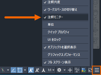 ステータス バーの[注釈モニター]ボタンをクリックすると、注釈モニターのオン