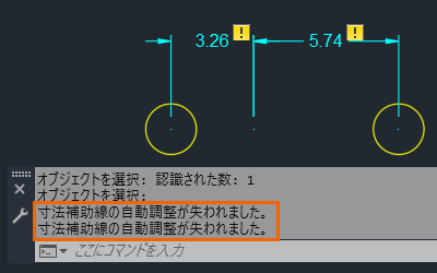 寸法が自動調整解除されると、AutoCAD はコマンド プロンプトに次のいずれかのメッセージを表示します。