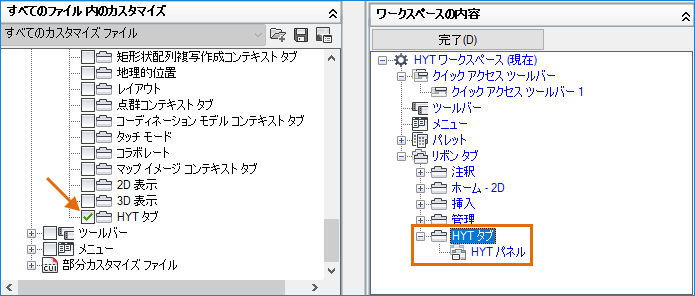[HYT タブ]が、[ワークスペースの内容]ペインの[リボン タブ]ノードに追加されます。