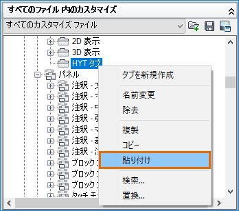 6. [タブ]ノードの下で、[HYT タブ]を右クリックし、[貼り付け]を選択します。