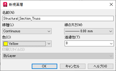 - [新規画層]ダイアログ ボックスの[名前]テキスト ボックスに、Structural_Section_Truss という名前を入力します。