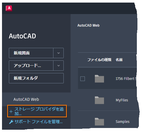 AutoCAD Web アプリにクラウド ストレージ プロバイダを追加する