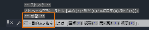 コマンド プロンプトに現在のモードが表示されます。カーソルを移動して、モードを確定することができます。最後はストレッチ モードに戻ります。