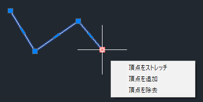 カーソルの動きに従って線分がストレッチされます。このストレッチは、点を選択するまでの一時的な表示です。