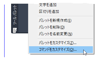 注: [ユーザ インタフェースをカスタマイズ] (CUI)エディタでカスタム コマンドを作成し、それをツール パレットやリボンに追加することもできます。