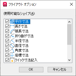 1. [ツール プロパティ]ダイアログ ボックスの[コマンド]セクションで、寸法ツールの動作をコントロールするプロパティを編集することができます。