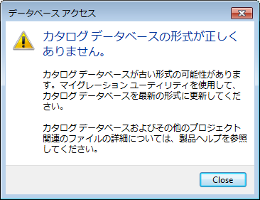 テーブルの追加、レコードの追加、レコードの編集を行って、カタログ データベースをカスタマイズすることができます。ただし、変更を行った結果、カタログ データベースを使用できなくなることがあります。この場合、次の警告が表示されます。