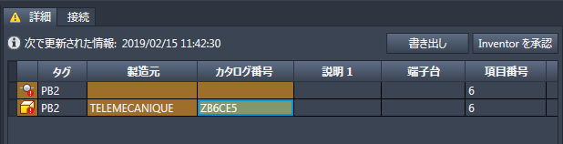 タグ、装置、およびロケーション属性に差異がある場合、これらの属性は[Inventor を承認]機能の一部ではないため、Electrical コンポーネントの値を同等の Inventor の値で手動更新します。