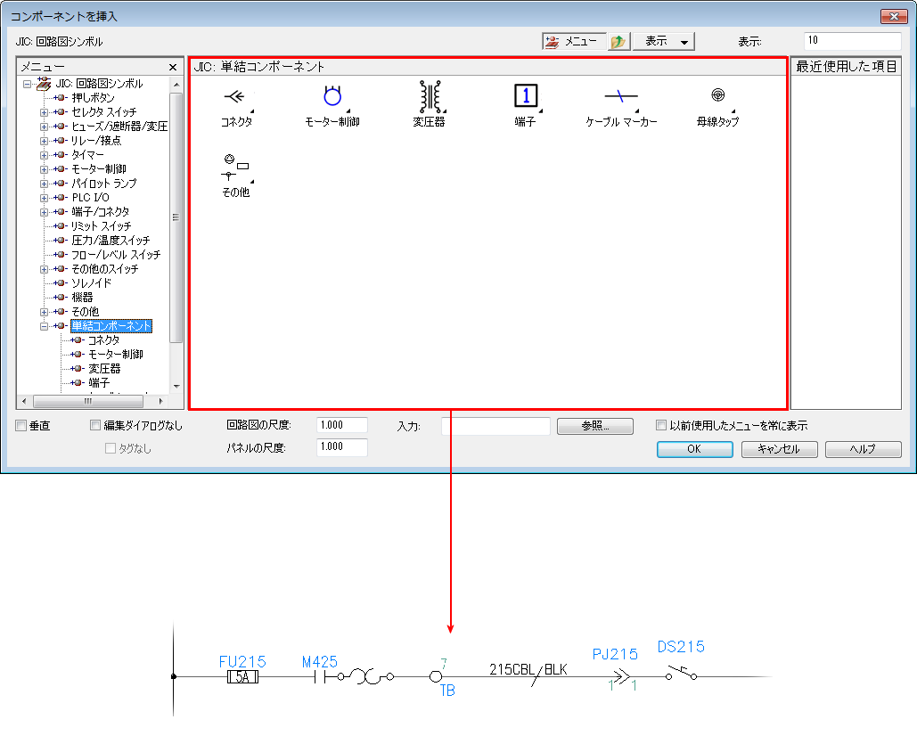 [図面形式]タブの[リファレンスの形式設定]領域で選択するラダー リファレンス設定により決まります。 (組み合わせの場合)プラグ ID またはジャック ID を指定します。プラグの場合は P、ジャック(レセプタクル)の場合は J とします。