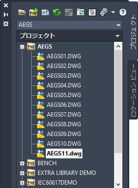 Users¥{ユーザー名}¥Documents¥Acade {バージョン}¥Aedata¥Tutorial¥Aegs¥Projects を、次の場所にコピーします。 Users¥{ユーザー名}¥Documents¥Acade {バージョン}¥Aedata¥Proj¥Aegs |