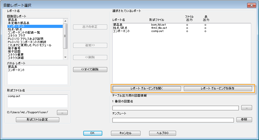 同じレポート グループを頻繁に実行する場合、グループをレポート グルーピングとして保存できます。レポート グルーピングを設定するには、レポートを実行する場合と同様にすべての形式ファイルを追加し、レポート グルーピングを保存します。形式ファイルに関する情報は、拡張子が .rgf のレポート グルーピング ファイルに保存されます。次回、このレポート グループを実行する際は、前に保存した .rgf を開きます。