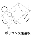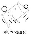 複数の点を指定して定義されたポリゴンの内部のオブジェクトまたはポリゴンと交差するオブジェクトが選択されます。ポリゴンはどんな形でもかまいませんが、自己交差したり自己接触したりするものであってはなりません。ポリゴンの最後のセグメントは常に閉じたポリゴンができるように作図されます。[ポリゴン交差(CP)]は、システム変数 PICKADD の影響を受けません。