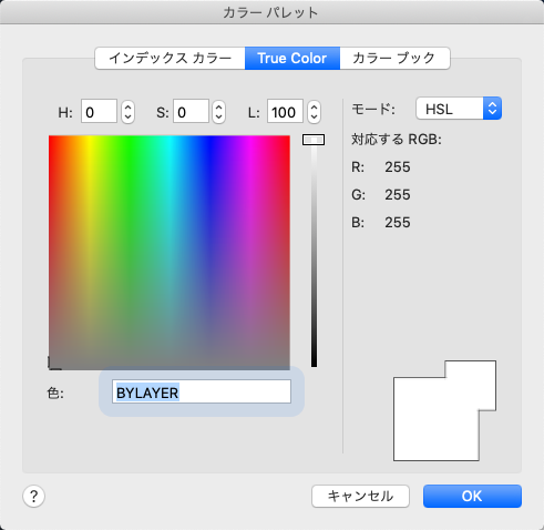 Specifies color settings using true colors (24-bit color) with either the Hue, Saturation, and Luminance (HSL) color model or the Red, Green, and Blue (RGB) color model. Over sixteen million colors are available when using true color functionality. The options available on the True Color tab are dependent on whether the HSL or RGB color model is specified.