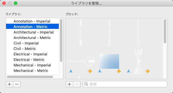 選択したライブラリに含まれるブロックが一覧表示されます。