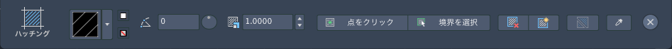 異なる種類の複数のハッチングまたは塗り潰しを図面内で選択すると、[ハッチング]バイザーの一部のコントロールは無効になります。