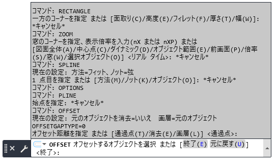 コマンド ウィンドウがドッキングされていない場合、[F2]を押すと、使用したコマンドとプロンプトのリストが、コマンド ラインの上または下に展開されて表示されます。