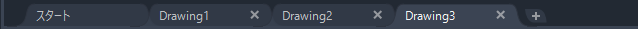 ファイル タブを使用すれば、アプリケーションで開いたすべての図面に簡単にアクセスすることができます。通常、ファイル タブにはファイルの完全な名前が表示されます。ファイル タブ バーの右端にあるプラス記号(+)をクリックすると、QNEW[クイック新規作成]コマンドが使用する指定済みテンプレート ファイルに基づいた新しい図面が開かれます。