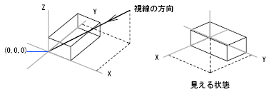 図面を見る方向を定義するベクトルを作成します。定義されるビューは、空間から原点(0,0,0)に視線を向けたようになります。