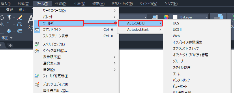 クラシック ワークスペース AutoCAD LT に含まれなくなりました。