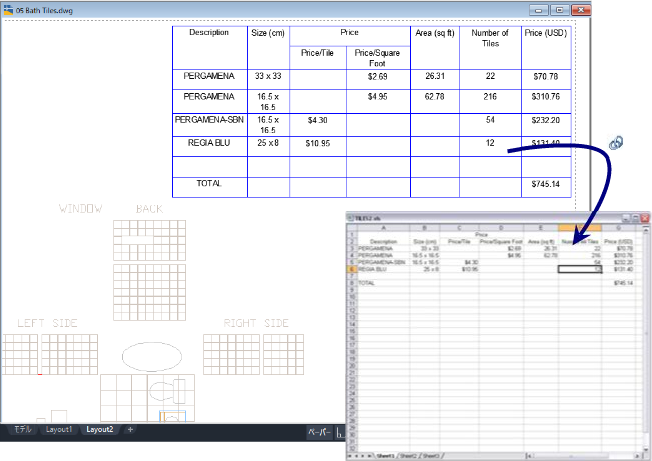 行や列を追加するなどして、リンクしたスプレッドシートを変更した場合は、DATALINKUPDATE[データリンク更新]コマンドを使用して図面内の表を更新できます。同様に、図面内の表を変更した場合は、同じコマンドを使用して、リンクしたスプレッドシートを更新できます。