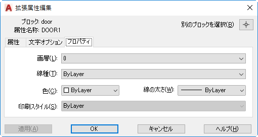 属性を配置する画層と、属性文字の線の太さ、線種、色を定義します。名前の付いた印刷スタイルを使用する図面の場合は、[プロパティ]タブを使用して属性に印刷スタイルを割り当てることができます。