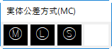 [幾何公差]ダイアログ ボックスの最初または 2 番目の公差値の MC ボックスにこの記号が挿入されます。