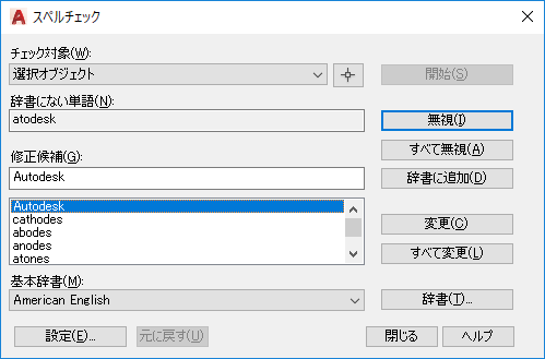 1 行文字、マルチ テキスト、マルチ引出線文字、ブロック属性内の文字、外部参照内の文字、寸法に追加された文字のスペルがチェックされます。