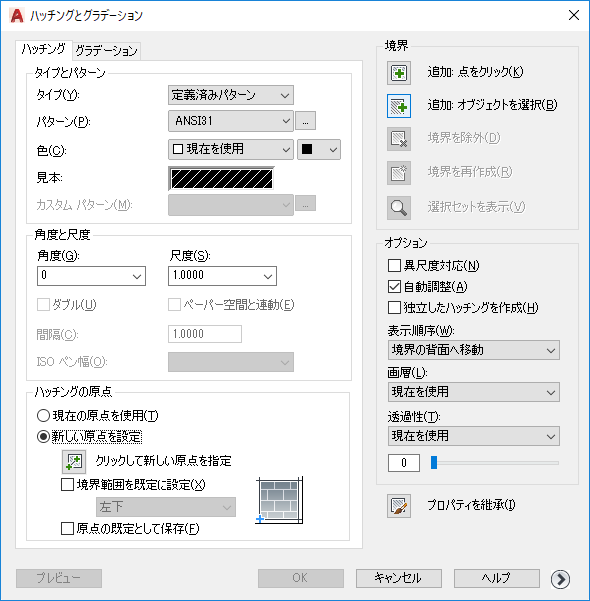 HATCH[ハッチング] (コマンド) 検索: プロンプトで設定のオプションを指定