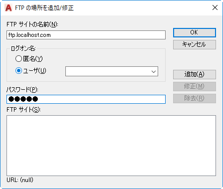FTP のサイト名を指定します(たとえば、ftp.autodesk.com)。