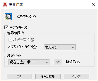 新しい境界オブジェクトのタイプをコントロールします。BOUNDARY コマンドは、境界をリージョンまたはポリライン オブジェクトとして作成します。